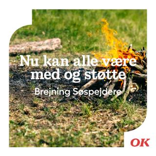 Billede af bål med teksten "Nu kan alle være med og støtte Brejning Søspejdere"